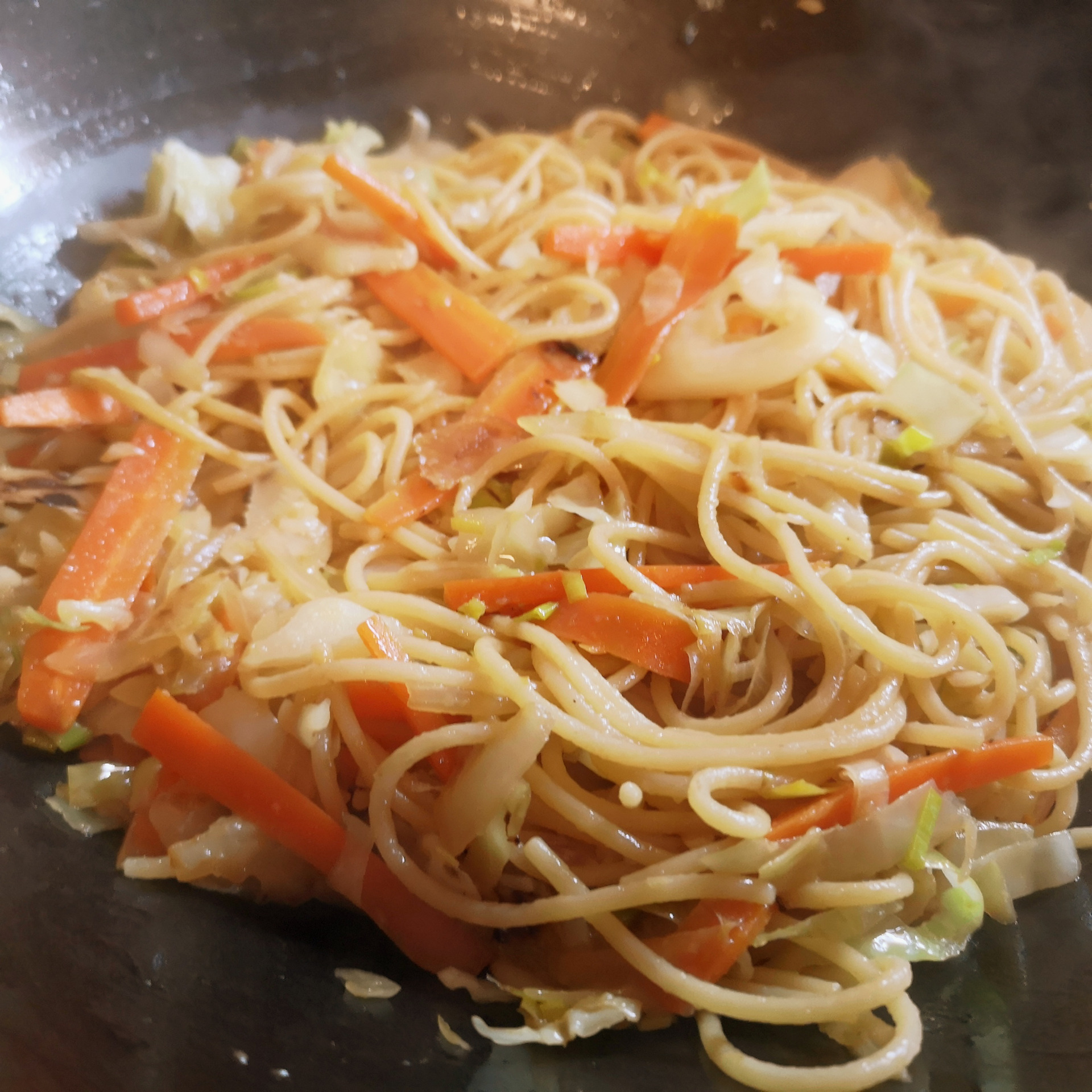 - A forró olajra dobjuk a zöldségeket, belenyomjuk a fokhagymát és sózzuk. A zöldségeket ropogósra pirítjuk. Hozzáadjuk a tésztát és átforgatjuk, picit lepirítjuk.