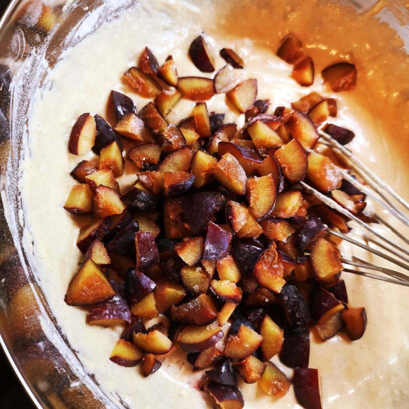 - A szilvát apróra vágjuk és beleforgatjuk a tésztába.